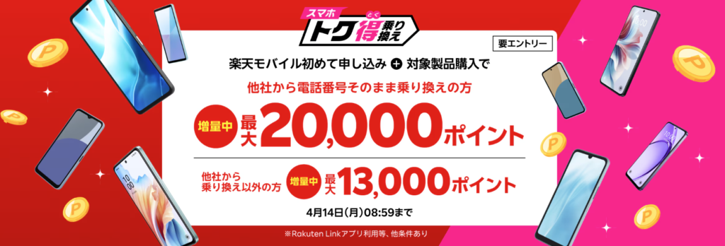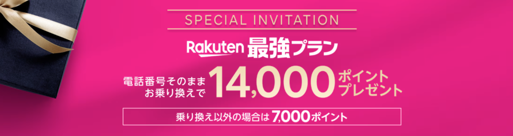 - 他社から楽天モバイルにMNPすると、最大14,000ポイント還元