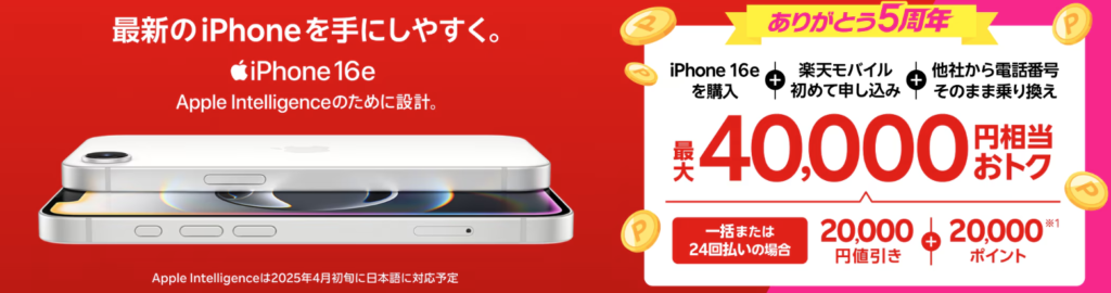 ✅ 楽天モバイル契約時に対象のiPhoneを購入で 最大40,000円相当還元!