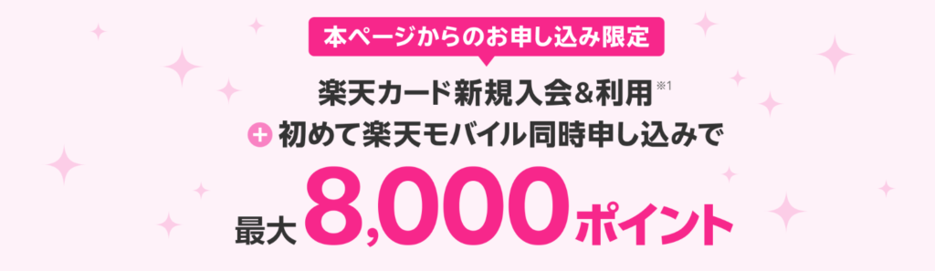 楽天カード&楽天モバイル同時申し込みで最大8,000ポイント還元!