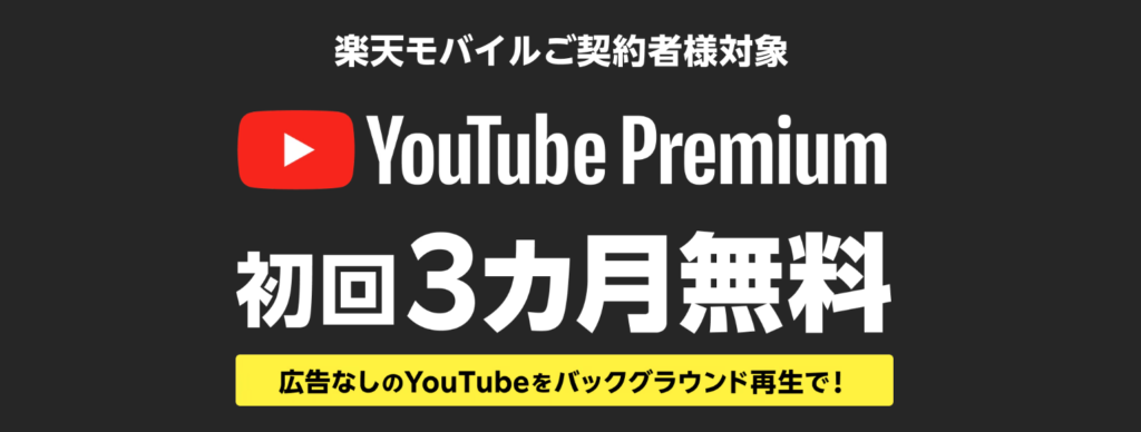 楽天モバイル契約者は、YouTube Premiumが初回3か月無料で利用可能!