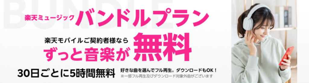 📌 楽天ミュージック バンドルプランの特典 ✅ 30日ごとに最大10時間まで無料(2025年4月から拡大!)